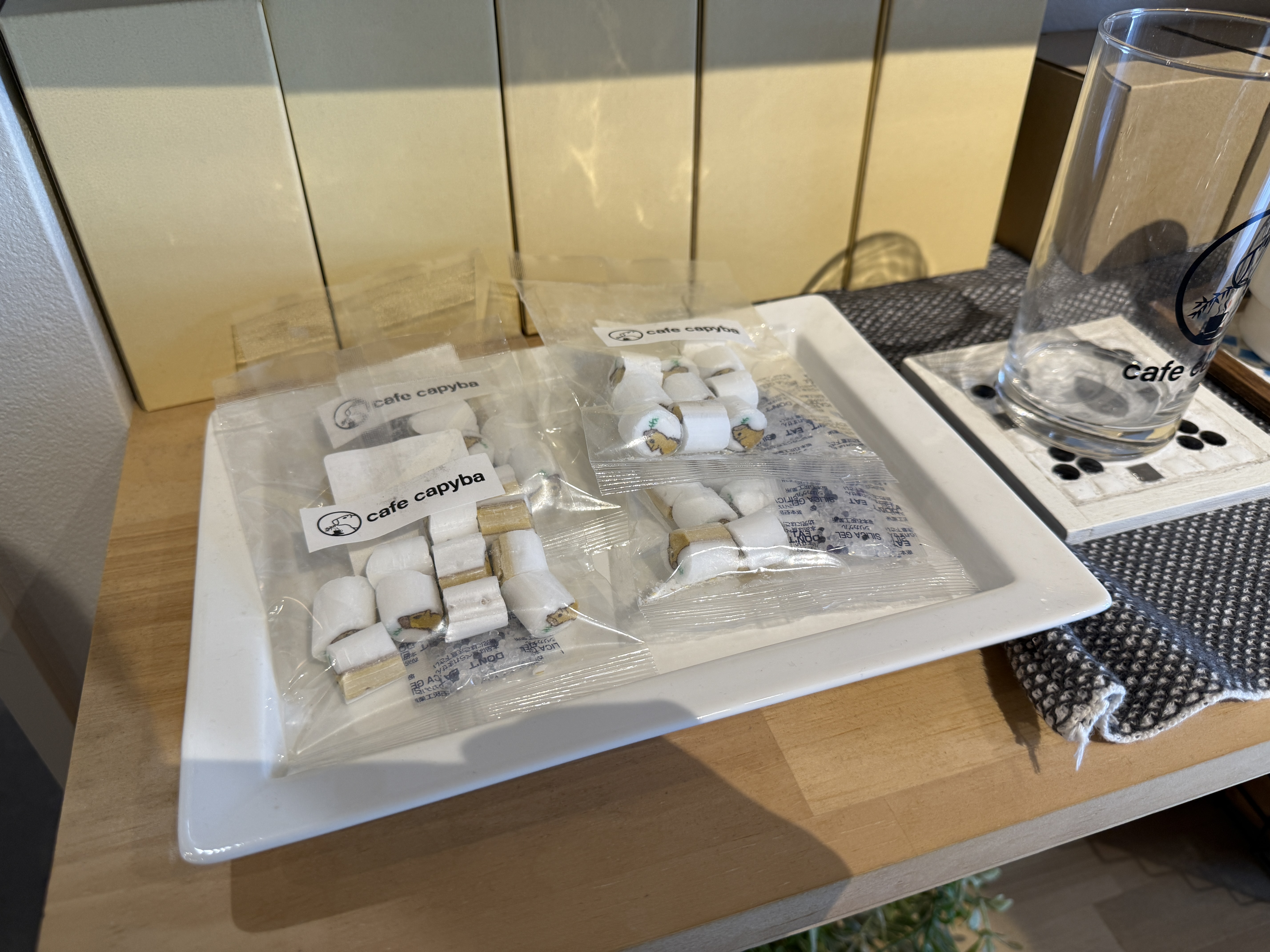 카피바라를 가까이 부르거나 옆에 두고싶다면 간식을 구매해서 주는 것도 괜찮다고 생각합니다.
