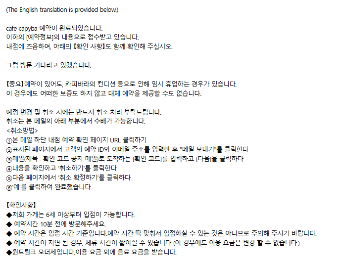 - 예약 사이트: cafe capyba 홈페이지 (https://cspace.co.jp/)